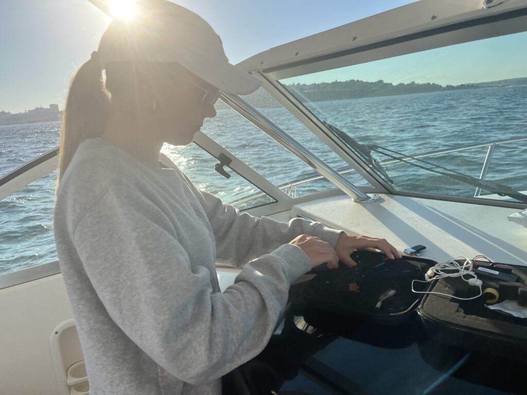 That’s where my mission begins. As a lifelong sailor, I’ve always felt connected to the ocean, but I’ve also approached it as a scientist, studying marine plastics, analyzing hydrophone recordings in Portland Harbor, and exploring ship design. Living in Maine, I see firsthand the urgency of protecting the critically endangered North Atlantic right whale. When I learned there are only 384 of these whales left in the entire world, action was no longer optional to me – it was essential.