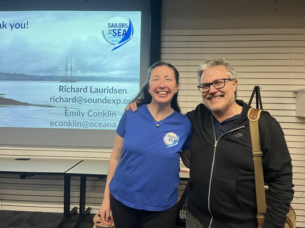 We were again joined by our friend from Sound Experience, Partnership Director Richard Lauridsen, to run a workshop on green boating in the context of sailing on board a tall ship. Our presentation focused on incorporating sustainability into provisioning, maintenance, viewing wildlife, and inspiring environmental stewardship in the next generation, with Richard lending real life experience from aboard the Schooner Adventuress. The best part of a workshop, though, is the input of the attendees, and we had a robust discussion with representatives from organizations across the country. From cleaning products to food waste management, the common thread was not a lack of awareness, but a lack of resources. Luckily, that’s a deficit that Sailors for the Sea is uniquely positioned to support.